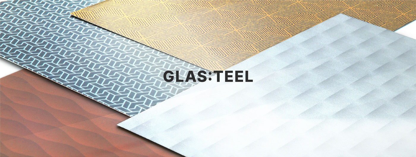 A compound word of GLASS and STEEL, which combines high-gloss PET with digital printing or monochromatic materials.